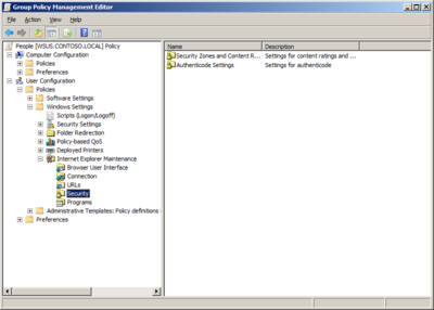 "User Configuration -> Policies - > Windows Settings - > Internet Explorer Maintenance -> Security"